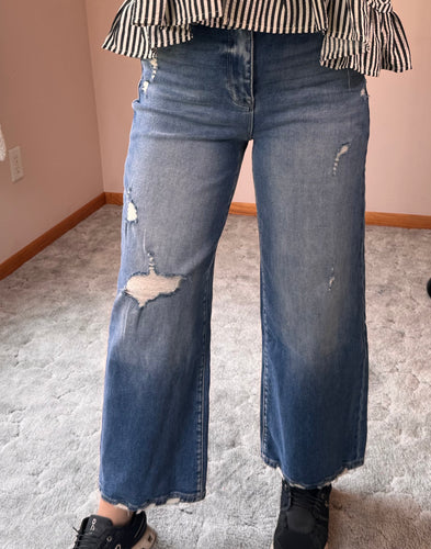 • Distressed Wide Leg Petra Jeans
