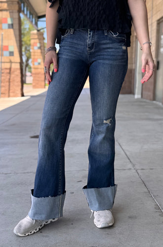• Dark Wash Cuffed Hem Flare Petra Jeans