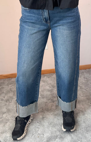 • Dark Wash Cuffed Wide Leg Lovervet Jeans