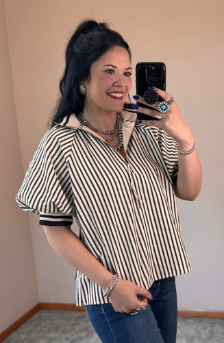 Striped 1/4 zip Top **3 COLORS** - PLUS
