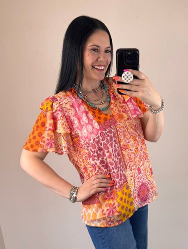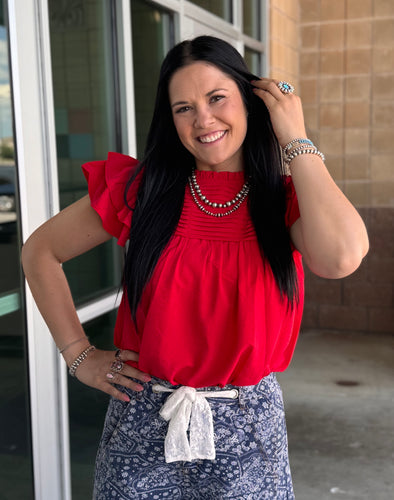 Lace Trim Flutter Sleeve Top **2 COLORS**