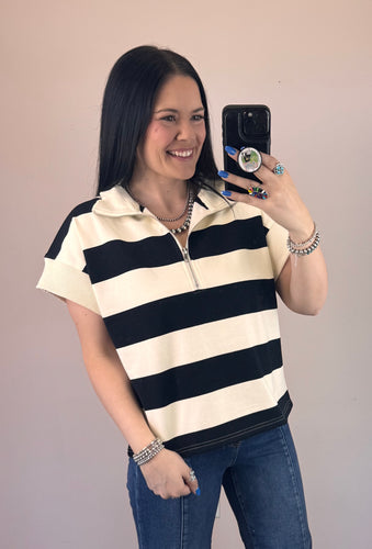 Short Sleeve Striped 1/4 Zip Pullover **2 COLORS**