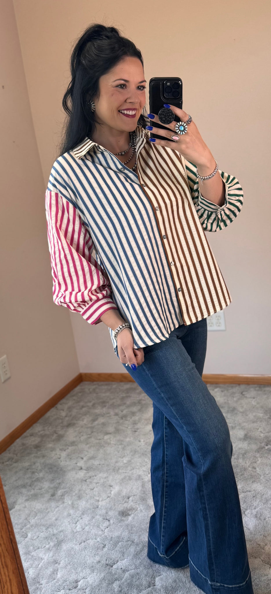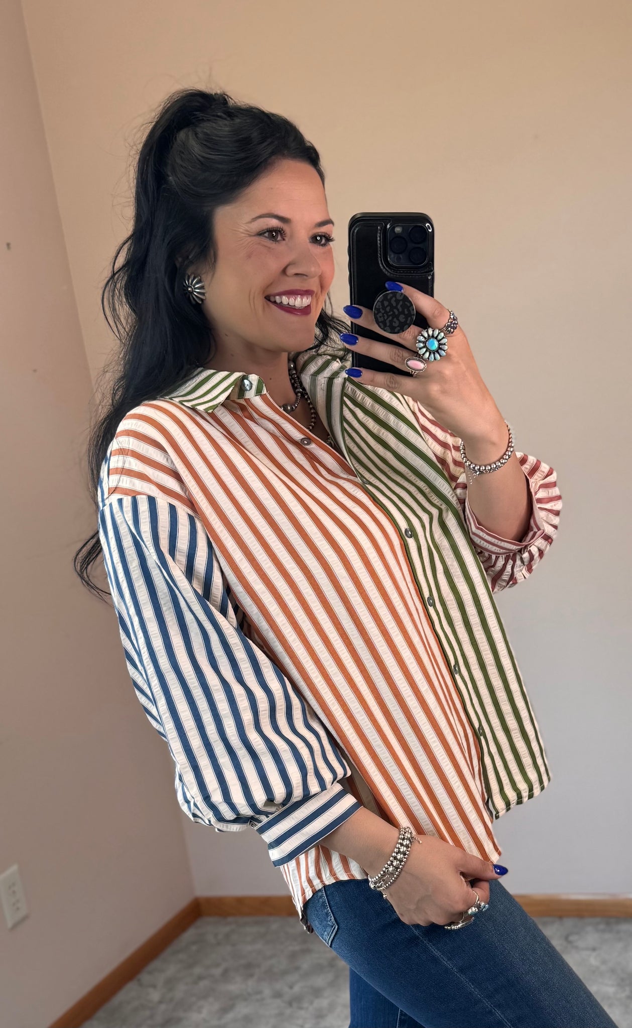 Colorblock Striped Button Down **2 COLORS** - PLUS