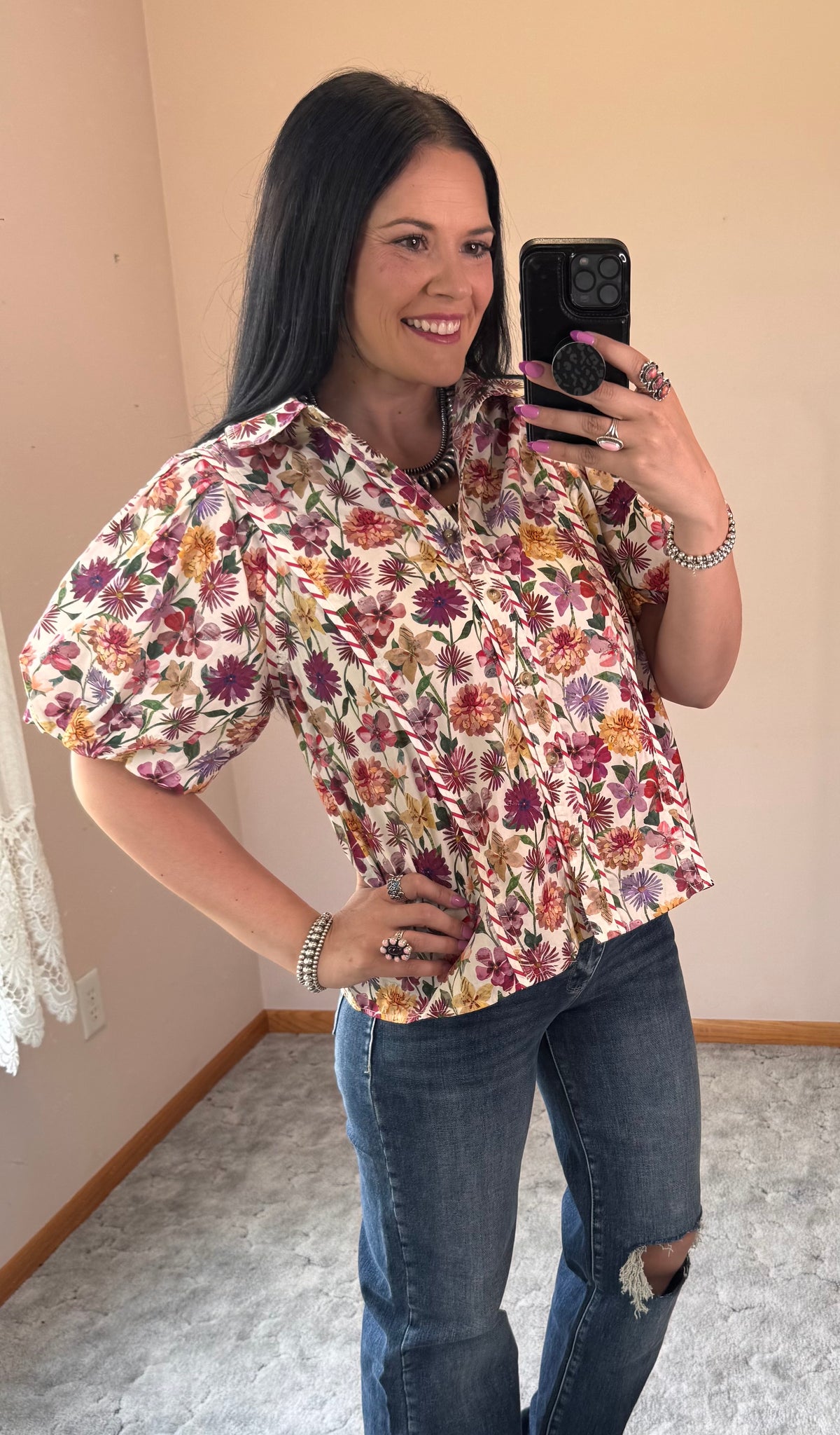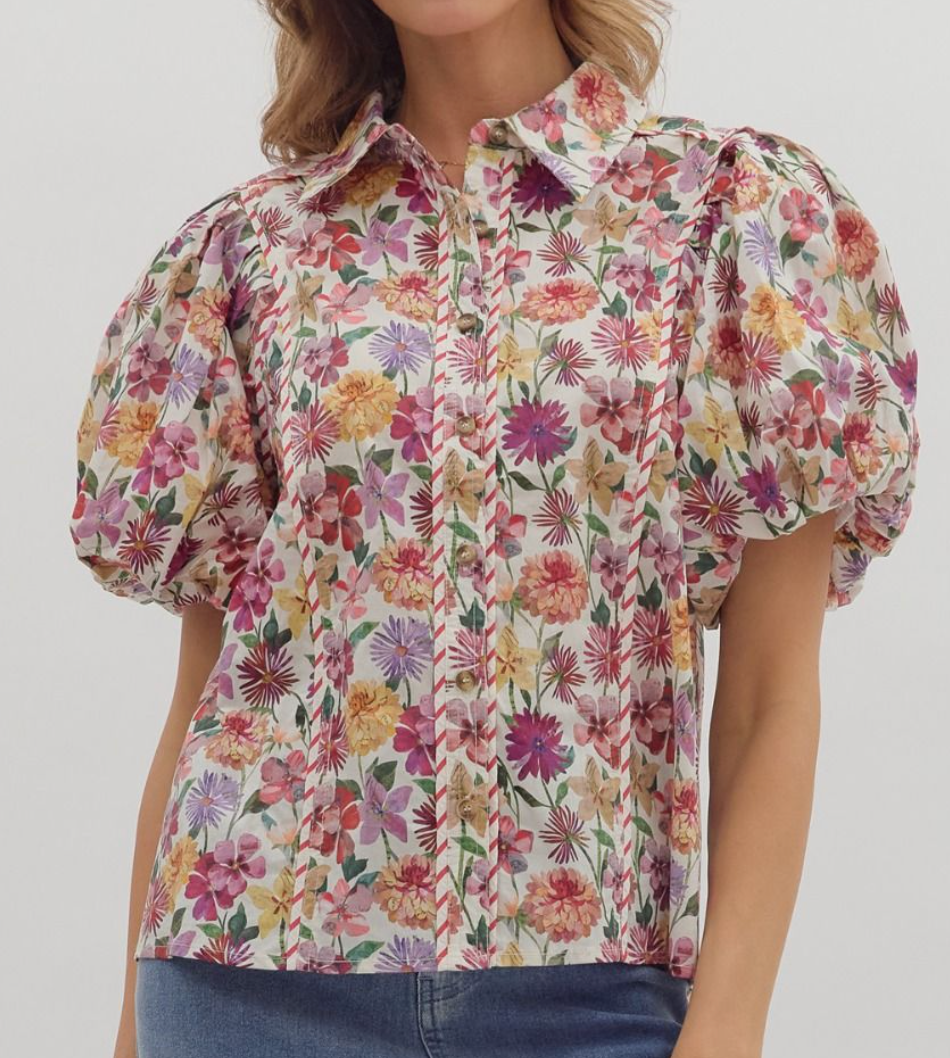 Floral Puff Sleeve Button Down Top **2 COLORS**