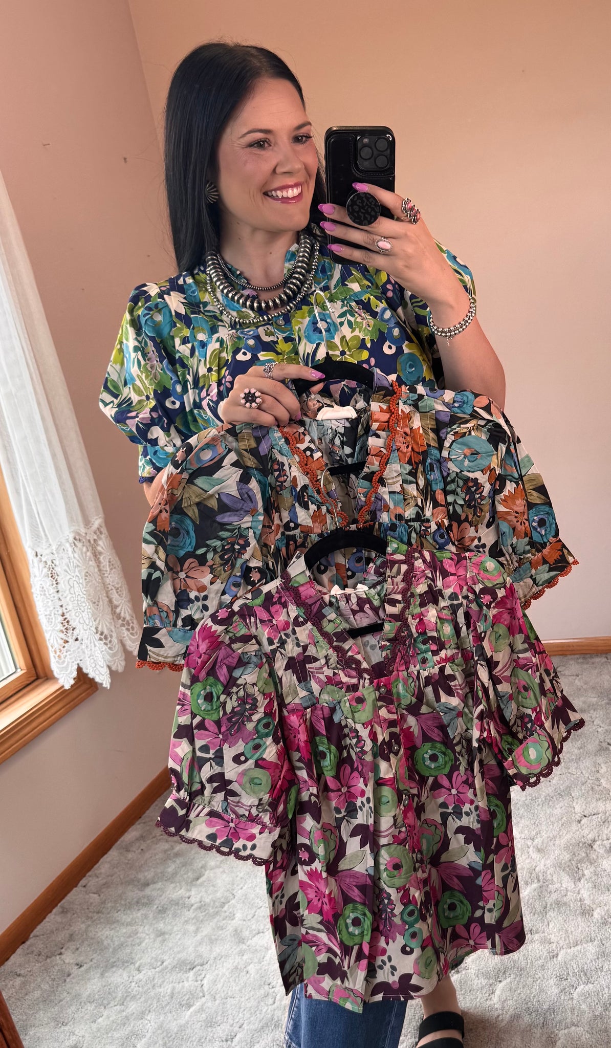 • Load image into Gallery viewer, Floral Scallop Trim Top **3 COLORS**